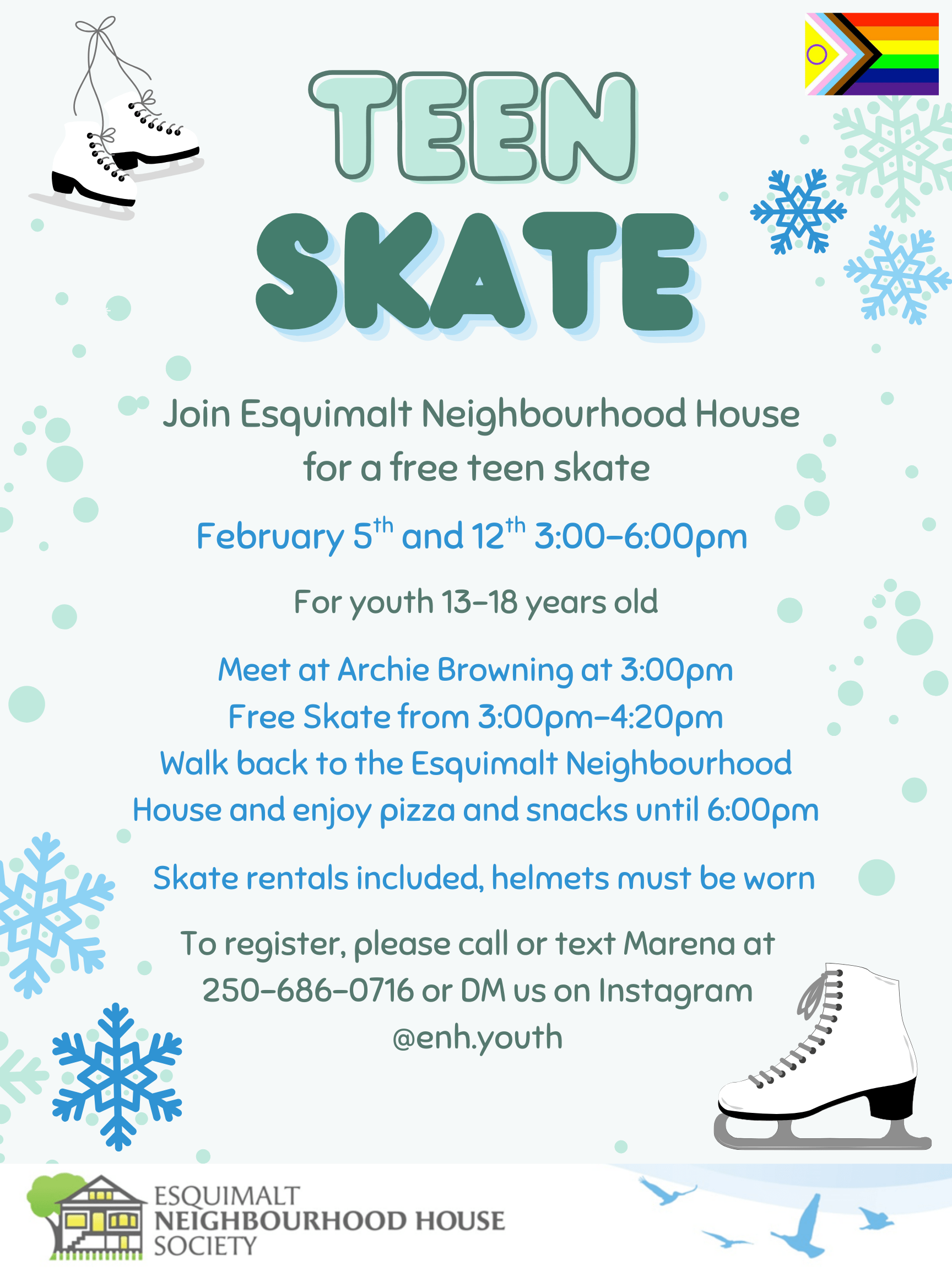 Walk back to the Esquimalt Neighbourhood House and enjoy pizza and snacks until 6:00pm