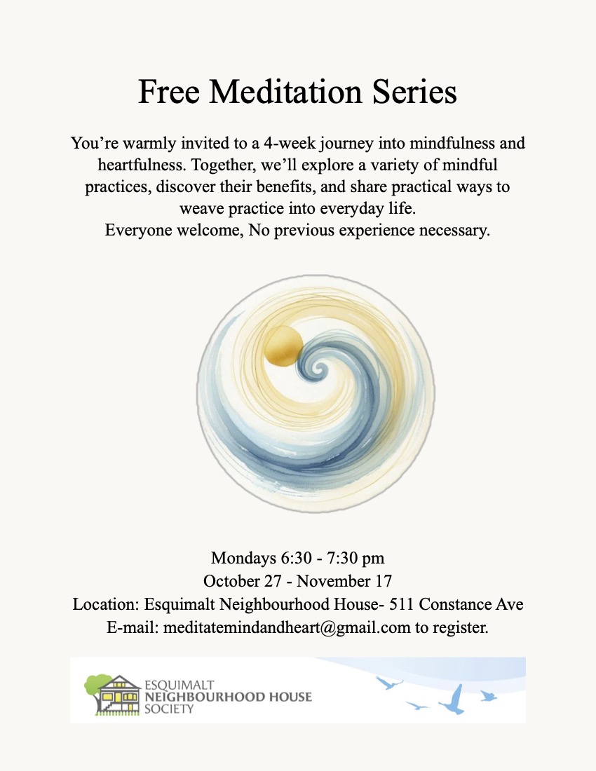 You’re warmly invited to a 4-week journey into mindfulness and heartfulness. Together, we’ll explore a variety of mindful practices, discover their benefits, and share practical ways to weave practice into everyday life.