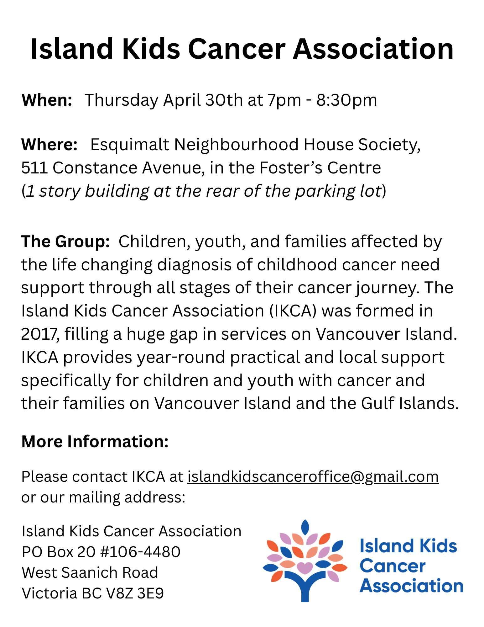 More Information: Please contact IKCA at islandkidscanceroffice@gmail.com or our mailing address: