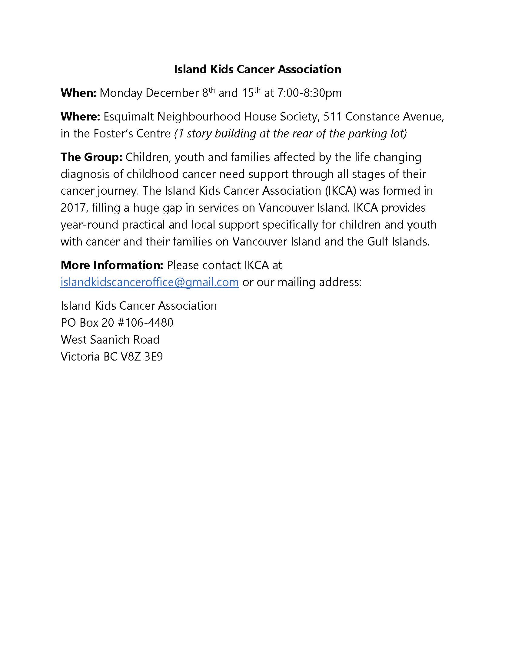 More Information: Please contact IKCA at islandkidscanceroffice@gmail.com or our mailing address: