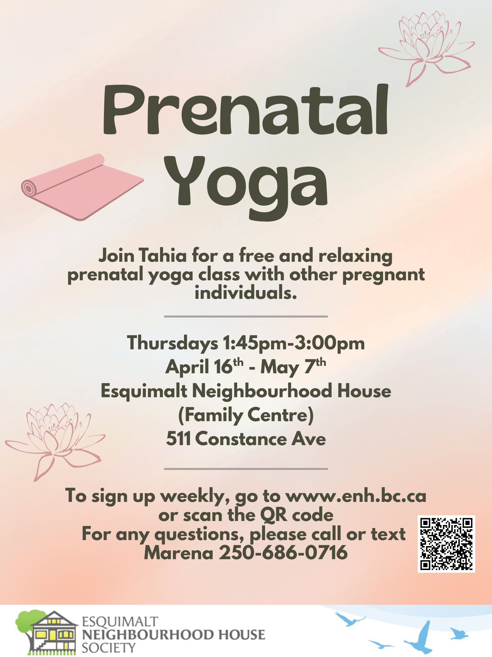 Join Tahia for a free and relaxing prenatal yoga class with other pregnant individuals.